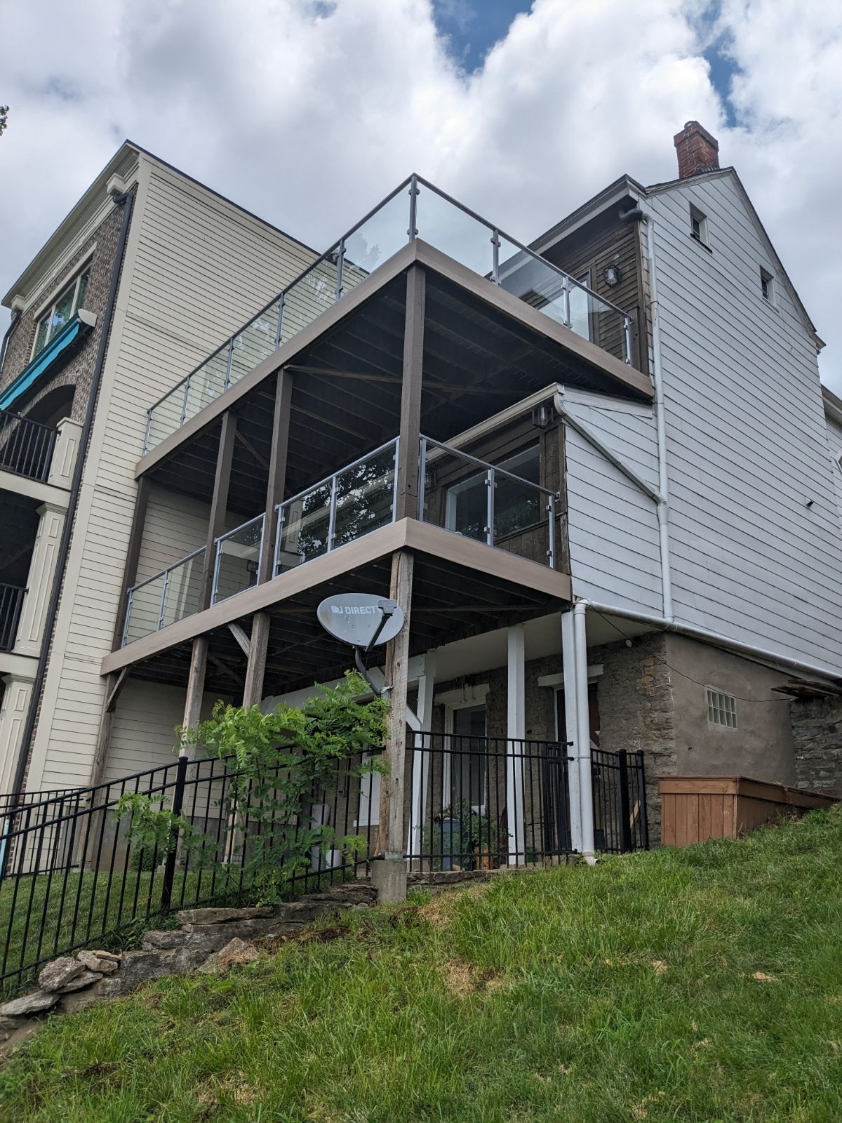 modern glass and silver metal railings, with modern patio furniture included, and